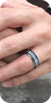 Anneau de Fiançailles Homme Chaine Bleue - Bague Anti-stress Tournante Acier Inoxydable