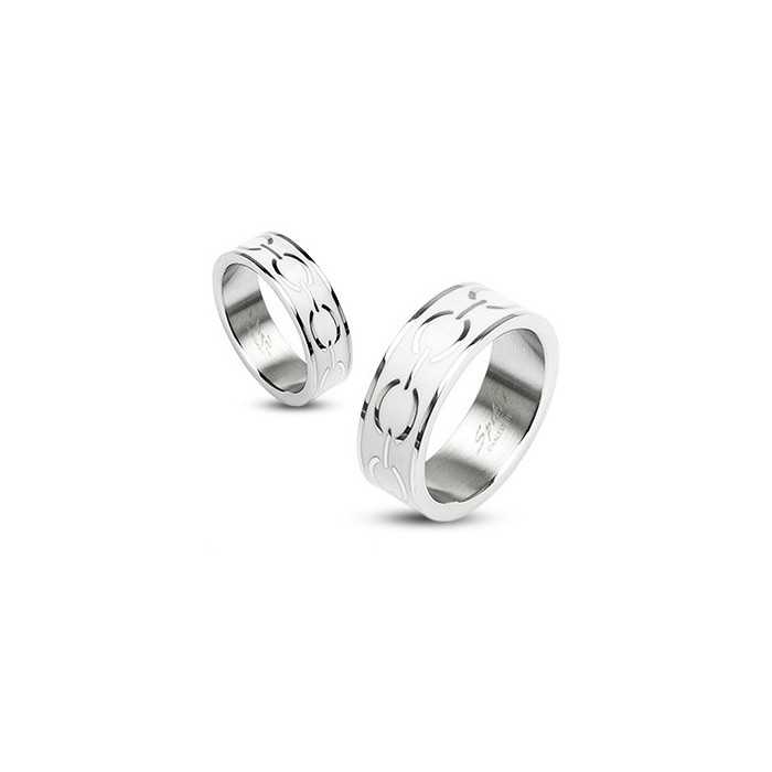 Bague anneau homme acier couleur blanche liens chaines gravés