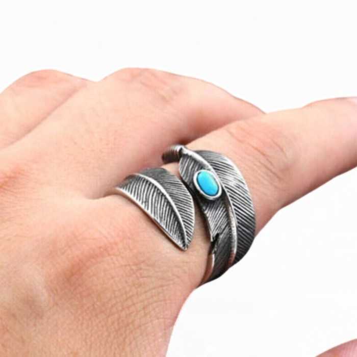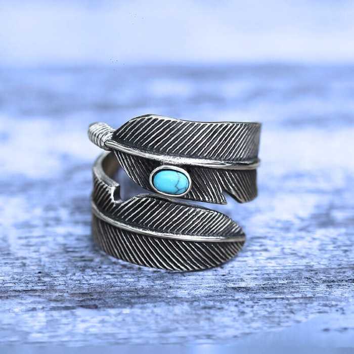 Bague homme acier tête de chef indien apache coiffe de plumes biker