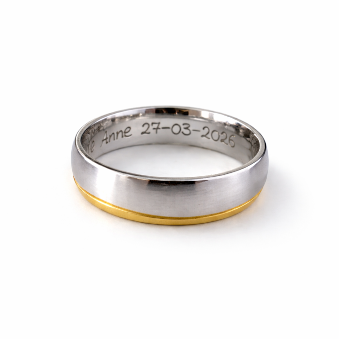 Vous pourrez rendre encore plus unique cette bague en choisissant une personnalisation intérieure avec un prénom, une date... à vous de choisir. L'intérieur de la bague est complètement lisse, donc épouse le doigt parfaitement avec sensation.