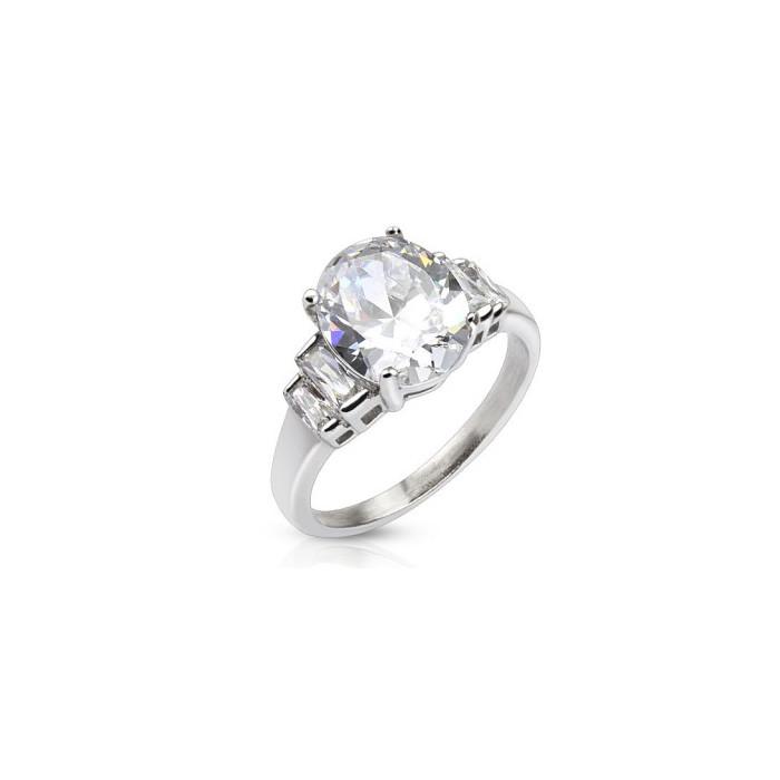 Bague solitaire de fiançailles promesse femme acier sertie pierre zircon