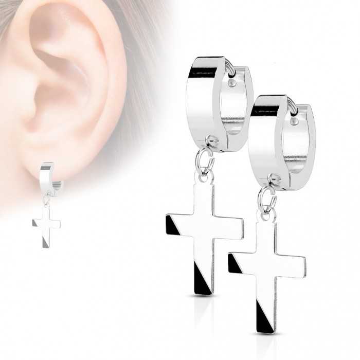 Optez pour un style religieux et stylé à la fois avec cette paire de boucles d'oreilles créoles pour homme ou femme également. Ces boucles d'oreilles pour oreilles percées avec pendentif croix, sont conçues en acier inoxydable et sont proposées de différentes couleurs. Une tige, légèrement arquée, relie les deux anneaux épais, segmentés en deux. Le pendant est une magnifique petite croix latine de fine épaisseur, aux branches larges et plates, suspendue à deux bélières entrelacées. Ces boucles d'oreilles croix homme se ferment par simple pression sur la tige ce qui facilite la pose et assure la fiabilité au bijou. Un bijou très classe proposé à petit prix.