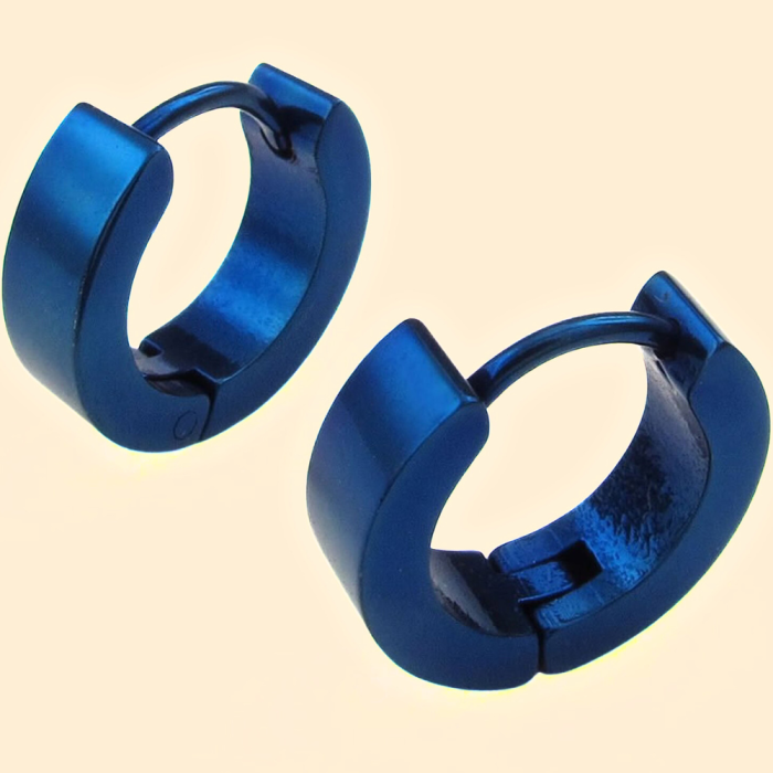 Voici une jolie paire de boucles d'oreilles homme avec à clips bleues conçues en acier inoxydable avec un placage bleue par ionisation. Sa couleur bleue métallique unique évoque le calme, la confiance et la fiabilité. Ces créoles bleues homme s'ouvrent grâce à un fermoir russe, pour une fermeture sécurisée. Elles s'ouvrent ainsi en deux au niveau de la charnière qui est placé en plein milieu de l'anneau, la pose est donc ultra-facile et se ferment par simple pression.