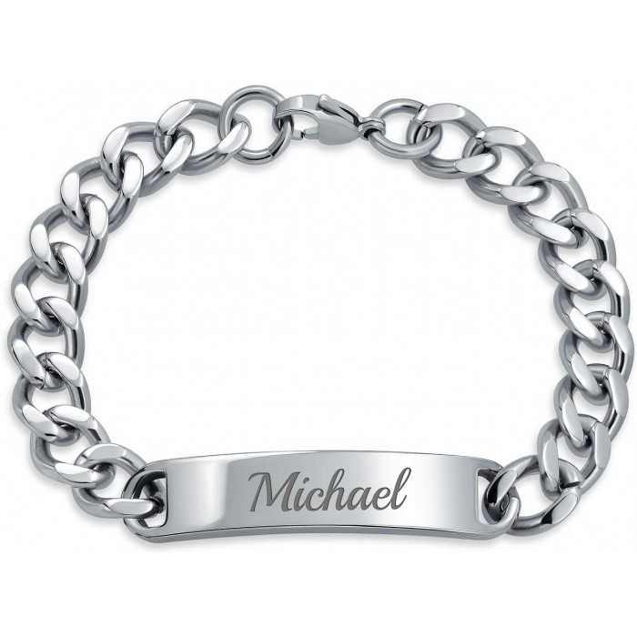 Entièrement personnalisable grâce à sa large plaque à graver ce joli bracelet pour homme est constitué de mailles cubaines en acier inoxydable pour un look absolument indémodable.