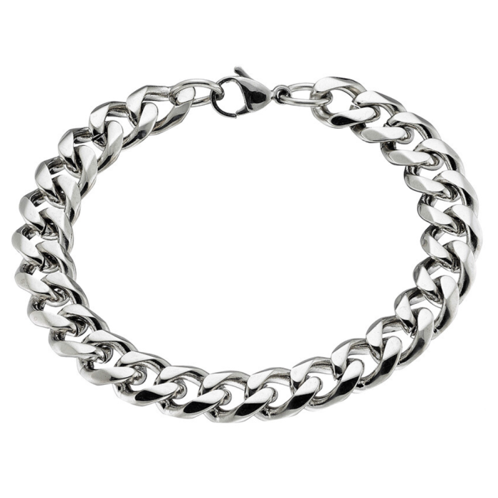 Découvrez cette gourmette en maille cubaine large de 9mm en acier inoxydable pour vous démarquer mais aussi d'imposer votre personnalité toute en virilité. Apportez une touche stylée à votre look classique à l'aide de cette épaisse gourmette cubaine argent légèrement bling-bling. Son éclat argent capte la lumière à chaque mouvement, apportant une touche luxueuse et moderne à votre look. Masculin, audacieux, intemporel, ce bracelet en maille cubaine impose le style avec élégance. Fermoir sécurisé et ajustement confortable pour un porté au quotidien ou en soirée.
