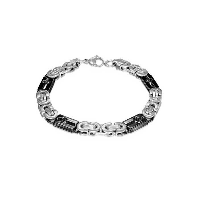 Magnifique bracelet original pour homme en acier inoxydable en maille byzantine et croix latine plaqué noir en alternance. Ce bracelet très élégant est équipé d'un fermoir en mousqueton sécurisé et discret à la fois.
