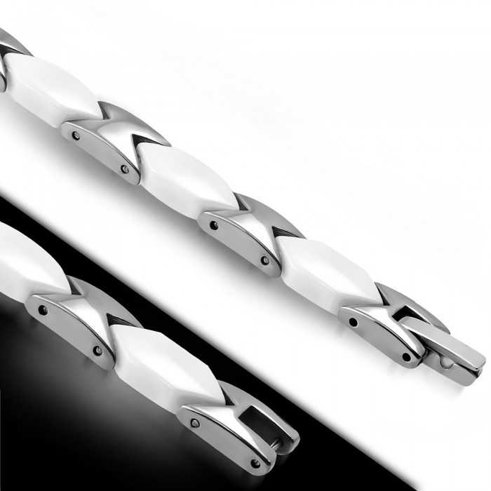 Cette gourmette céramique blanche magnétique attirera à coup sûr le regard par ce mélange de deux matières et couleurs. En effet, cette gourmette originale pour homme présente en alternance des maillons en céramique blanche et en carbure de tungstène couleur argenté, pour un visuel époustouflant. Ses 9 Aimants Néodyme 3 000 Gauss peuvent réduire stress et douleurs. Ce bracelet très élégant est équipé d'un fermoir sécurisé et discret à la fois.