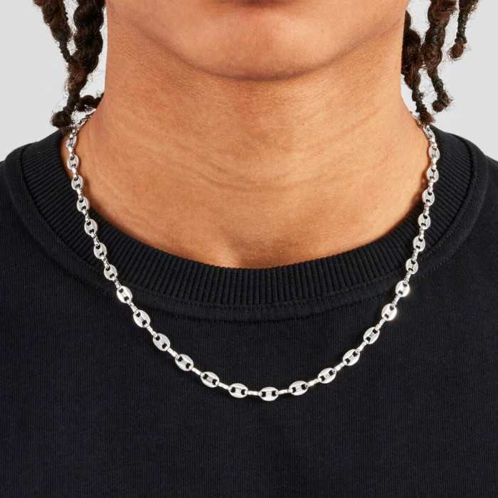 Chaine Grains de Café en Acier Inoxydable Argent Pour Homme - Largeur 6mm, Longueur 60cm