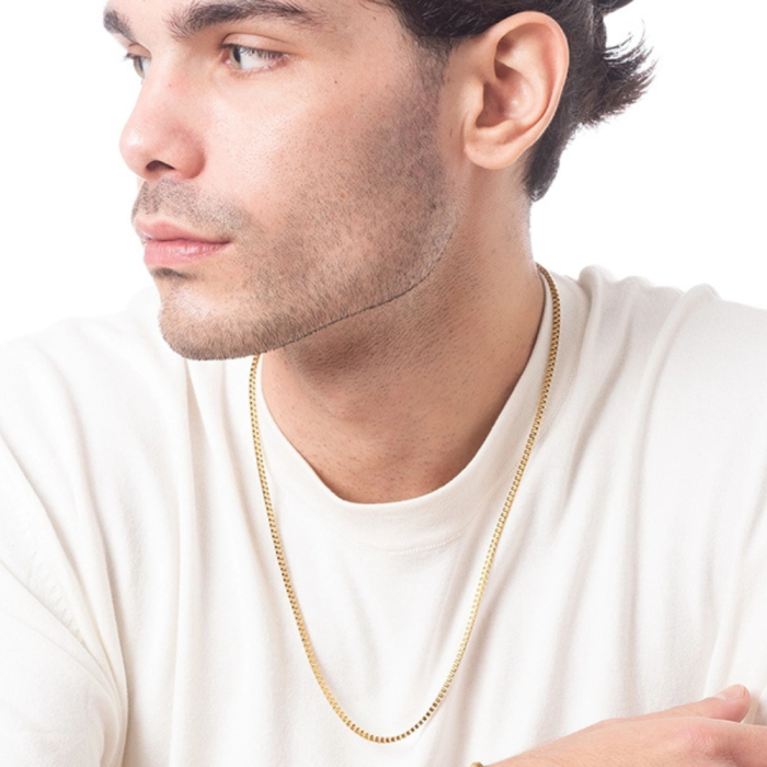 Une chaîne à maille vénitienne en acier doré à l'or fin de haute qualité poli et lustré pour des reflets optimisés. Le fermoir sécurisé en forme de mousqueton est très facile à positionner. Vous pourrez la porter seule ou avec un pendentif afin d’ajouter plus de style à votre allure. Elle existe en différente longueur 50cm ou 60cm.