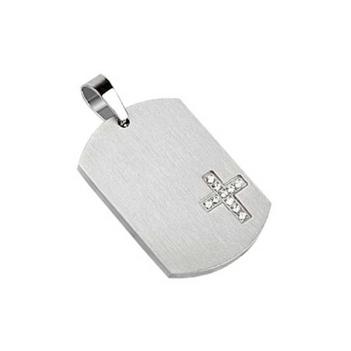 Herren-Kreuzanhänger aus Stahl mit Militärplatte, besetzt mit Zirkonen und 1 Kette
