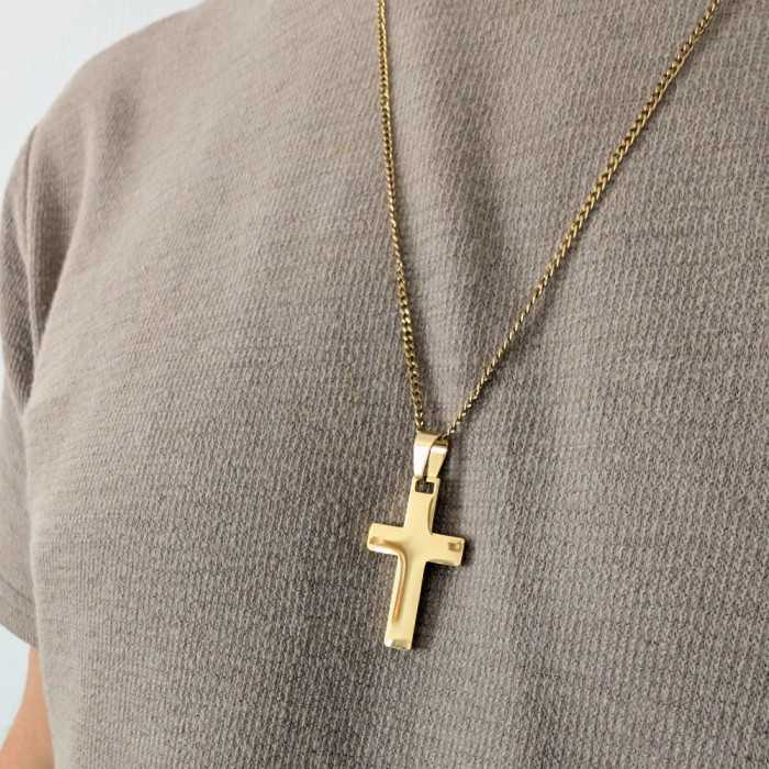 Kreuz Halskette für Männer Stahl anpassen Farbe Gold