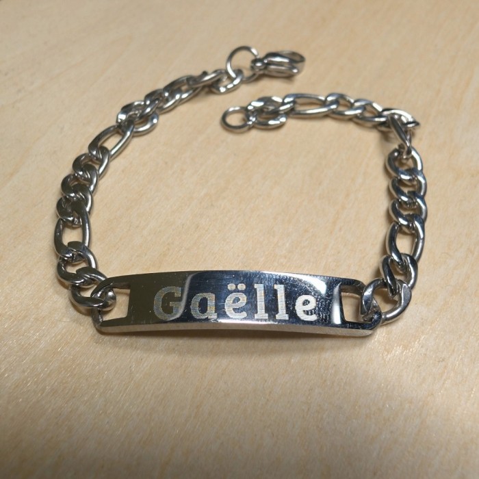 Mesh Strap Mesh Mesh Figaro 7 mm Stahl mit Teller, der graviert werden soll