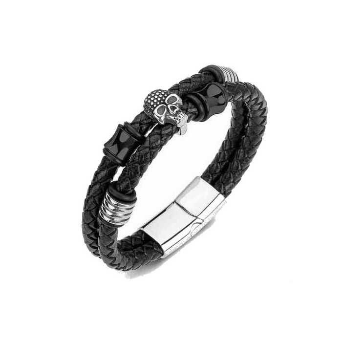 Hier ist ein Armband, das Leder und Stahl für Männer kombiniert. Egal, ob Sie ein intrepid Biker oder ein mysteriöser Badboy sind, dieses Armband mit einem Todeskopf ist das ultimative Juwel, um Ihren Charme zu verbessern.