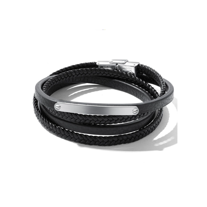 Ihr Männer Online-Shop präsentiert dieses prächtige echte Lederarmband mit einer unübertroffenen Klasse, die perfekt Ihren maskulinen Look ergänzen wird. Er kann Ihr Handgelenk perfekt einstellen. Die Kombination aus schwarzem Leder und Edelstahl macht es sehr elegant. In der Mitte einer Edelstahlplatte, bietet dieses Armband die Möglichkeit, es noch mehr durch Gravur anpassen. Ein wunderbares Geschenk zum Fest der Väter, Noel oder einfach zum Vergnügen zu bieten. Ein verführerisches Armband, das die Sinnlichkeit der Geste des raffinierten Mannes hervorhebt.