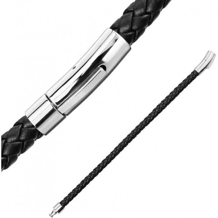 Herrenarmband schwarz Leder geflochtene Ansicht aus der Nähe der Verschluss magnetische Stahl