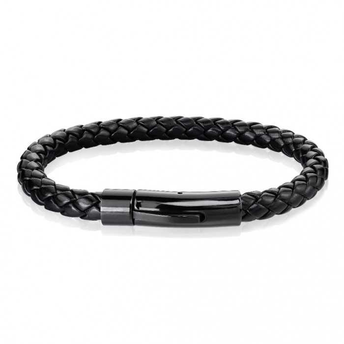 Herren Armband geflochtenes Leder und Verschluss schwarz magnetische Stahl vor Ansicht