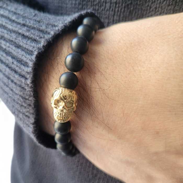 Das ist armband mit schwarzen perlen matt wird durch eine kopf des todes en edelstahl gold sorgfältig eingearbeitet. Die runde schwarze perlen von einem tiefen schwarz wurden gefädelt und auf einem sehr widerstandsfähigen stretch elastisch ausgerichtet, die zurückkehrt sehr einfach zu installieren armband und entfernen, während es für die meisten handgelenkgrößen geeignet ist. Sorgfältig handgefertigt, dieses Referenzarmband angebote naturschutz dem, der es trägt. Das ist armbandkopf des todes sie können ihren stil geltend machen. Endlich entworfen, dies armband kann den strengen täglichen gebrauch widerstehen und sie auf ihrem weg der selbstentdeckung und des persönlichen wachstums begleiten. Ideal für moderne Menschen, die Individualität und Avantgarde-Stil schätzen, dies fahrradgurt erfasst die essenz der männlichen eleganz. Die vaterpartei oder jubiläum wird die perfekte gelegenheit sein, dieses armband zu bieten.