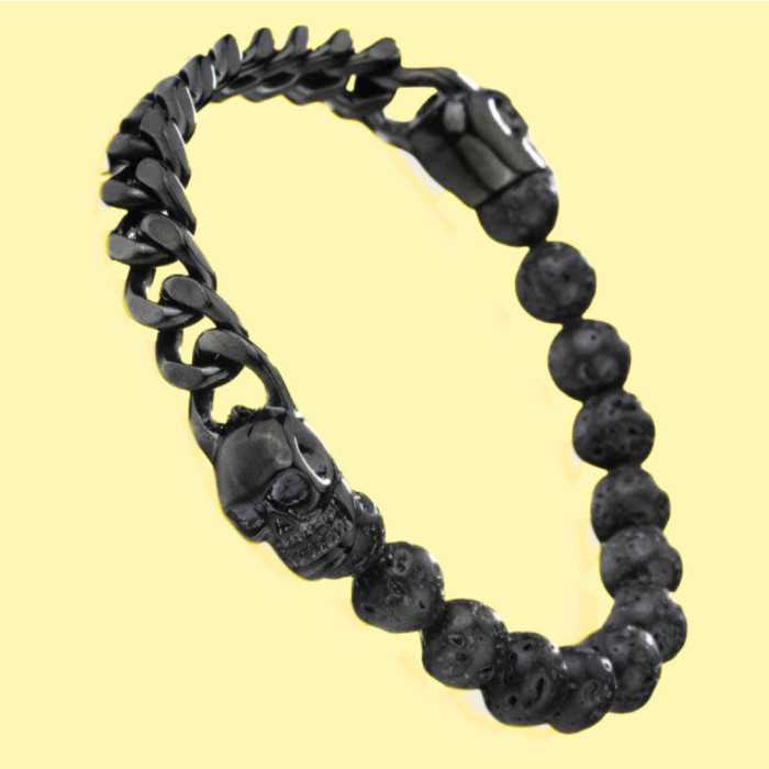 Double Men's Armband Death Heads mit kubanischen Maille in Edelstahl und Lava Volcanic...