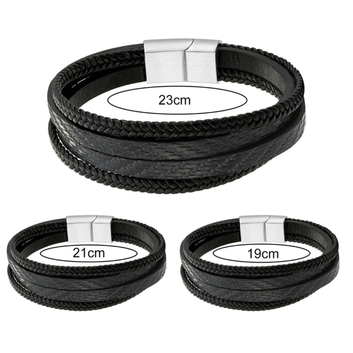 Schwarzes Lederarmband für Herren Vier Ranks und Edelstahlverschluss Schwarz anpassbar