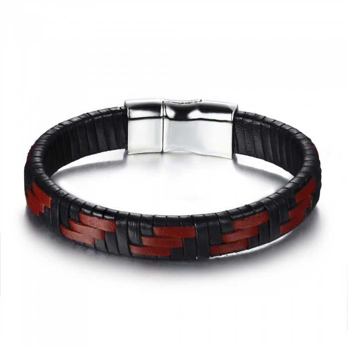 Original Herrenarmband aus braunem und schwarzem geflochtenem Leder mit einem sicheren Magnetverschluss aus Edelstahl.