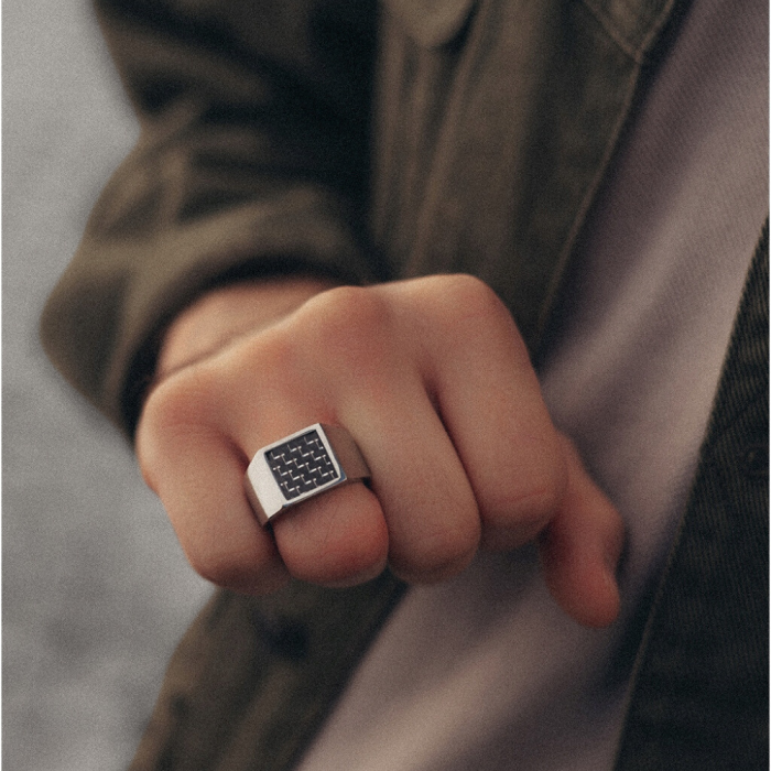 Ritterring für Herren in Carbonfaser-Quadratschale