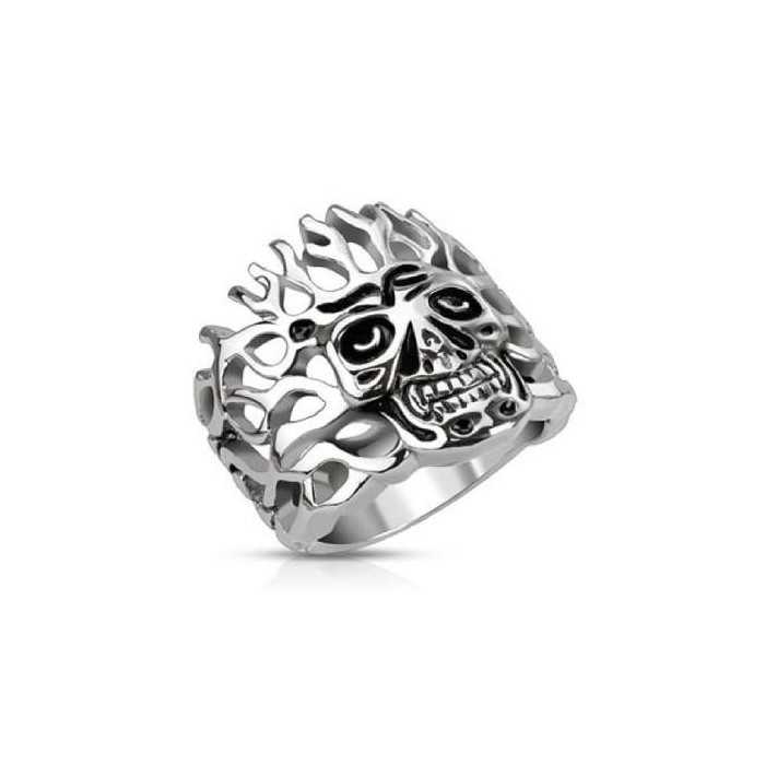 Ring repräsentiert einen Kopf des Todes, der entzündet.