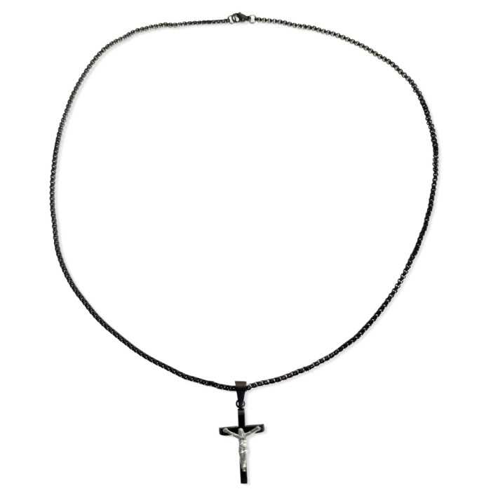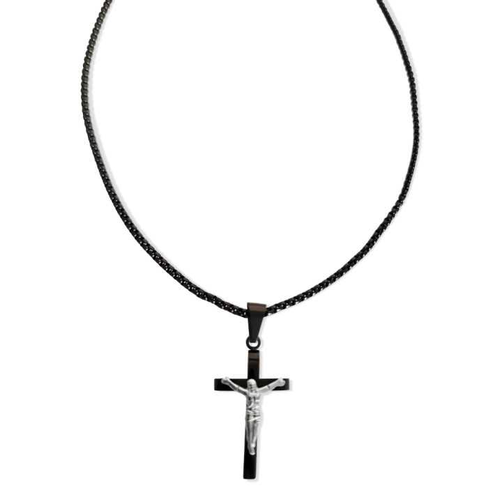 Männer Kreuz Anhänger und Jesus Christus Kette gekreuzigt in Schwarz Edelstahl für Männer