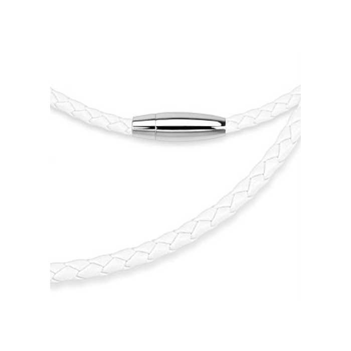 Diese Halskette besteht aus geflochtenem Leder in weißer Runde. Der Stahlverschluss ist magnetisiert, ideal für eine Person, die seine Halskette schnell tragen will. Eine ideale Halskette mit allen trendigen Outfits, herrlich auf einer Farbspitze.