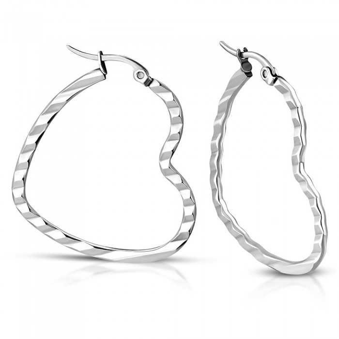 Die Originalität dieser Ohrringe liegt in seiner Herzform und regelmäßigen Klemmung entlang dieser hervorragenden Edelstahl-Kreole. Die Befestigung dieser Kreolen, mit perfekten Oberflächen, ist eine kleine Gelenkstange, deren Ende perfekt in die beiden Pariser Gurte passt. Sehr raffinierte Ohrringe, die unter unseren Haaren Glanz des Lichts werfen.