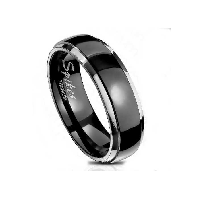 Ein hervorragender zweifarbiger Titanring, der die Kunst der Verschönerung der Hand des Mannes und der Frau hat, da er in 7 verschiedenen Größen vorgeschlagen wird. Der zentrale Streifen von einem sehr ordentlichen schwarzen Lack getönt und wunderschön bombardiert fesselt wunderbar die Auswirkungen des Lichts.