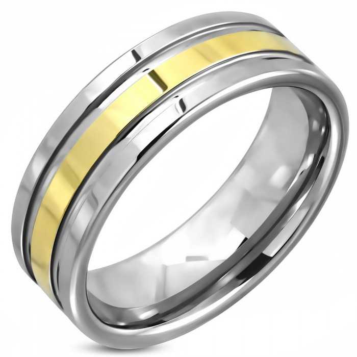 Herren-Ehering mit Wolframcarbid und vergoldetem Band