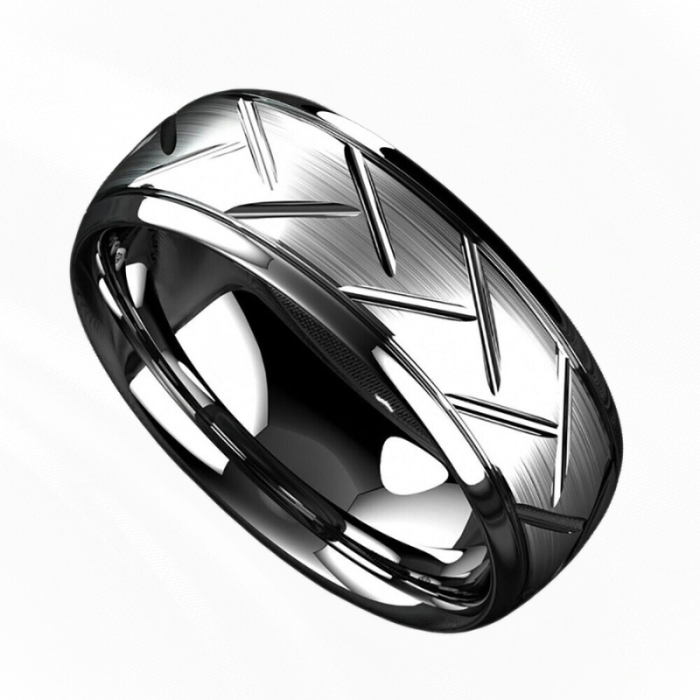 Ring Alliance Man in Edelstahlhochzeit mit gestreiften Rillen