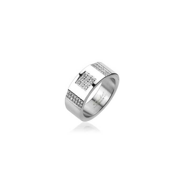 Schicker Bling-Bling-Herrenring aus poliertem Titan mit Steinbesatz