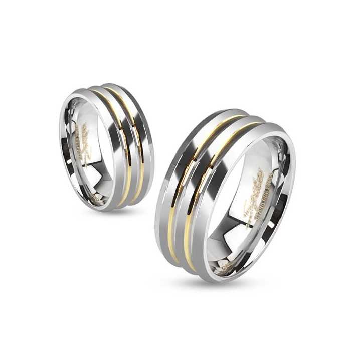 Schöne maskulinen Ring in Titan mit zwei goldenen Linien verziert.