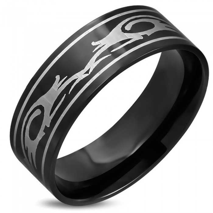 Edelstahlring mit schwarzem Furnier durch Ionisation, mit einem originalen Stammbaum aus weißer Farbe verziert. Ein schöner Ring, ideal, um ein lässiges Outfit zu verbessern. Die Innenseite des Ringes ist völlig glatt, so heiraten Sie den Finger perfekt mit Empfindung.