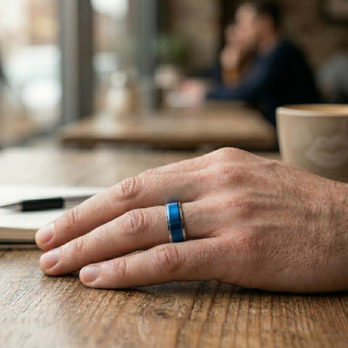Blue Steel Rotative Anti-Stress Ring: The Harmony of Style and Welfare