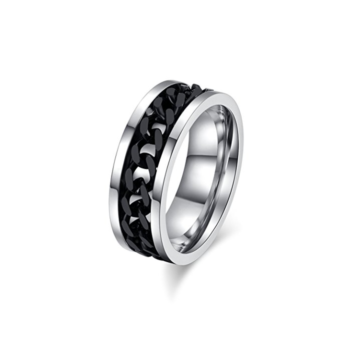 Men's Ring Female Ado Anti-stress Anxiety Rotative Spin ring in Silver and Black Steel