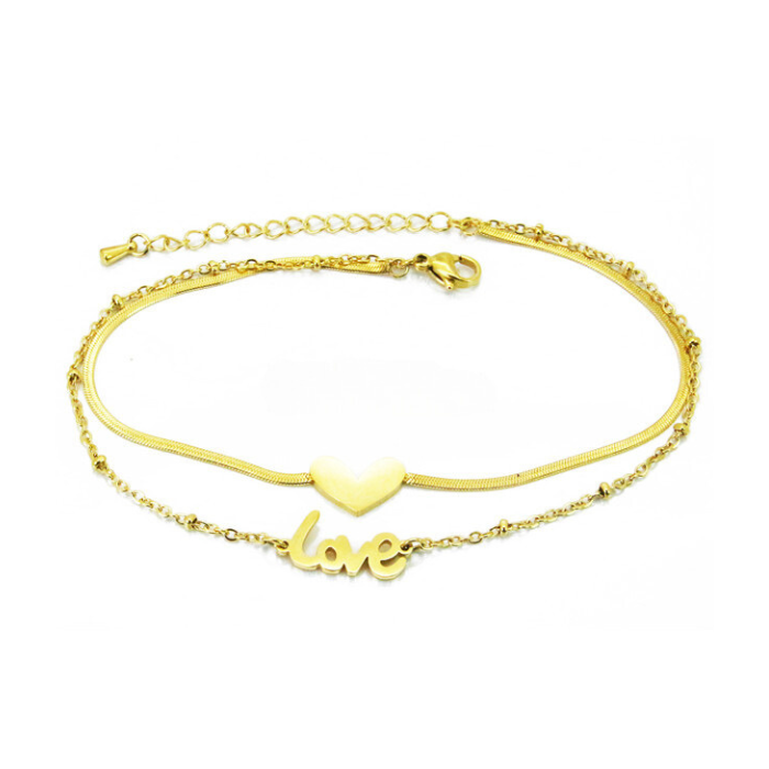 Cheville Chain Woman Stainless Steel Bracelet Gold-Folded Gold-Folded Heart Love
