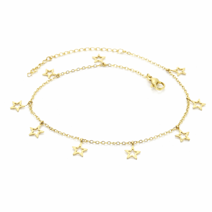 Ankle Chain Openwork Stars Woman Golden Stainless Steel Fine