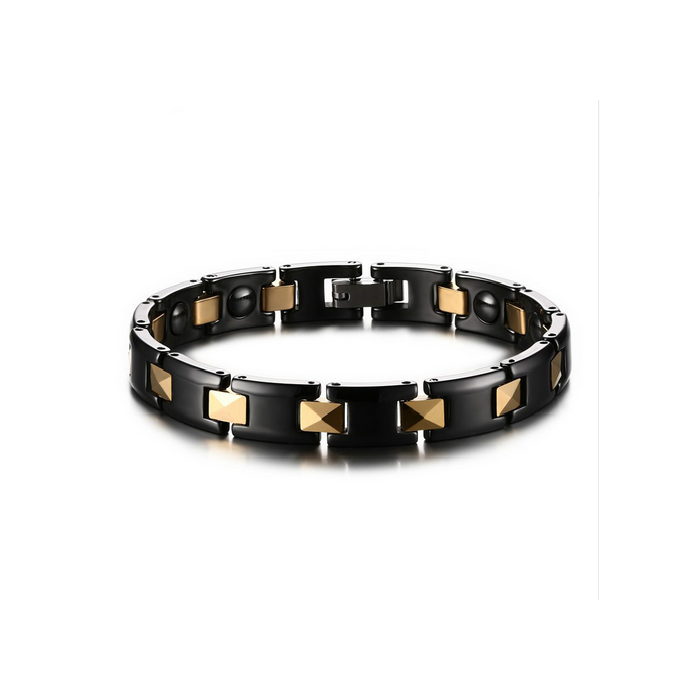 Beautiful gourmet for men in black ceramic and gold plated 18 carats. This very elegant jewel is equipped with a secure clasp.