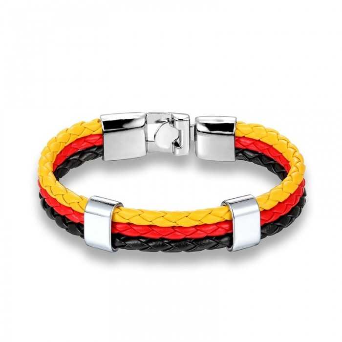 Men's braided leather bracelet Germany yellow red black and steel clasp