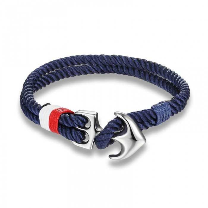 Men's nylon rope bracelet France flag steel clasp marine anchor