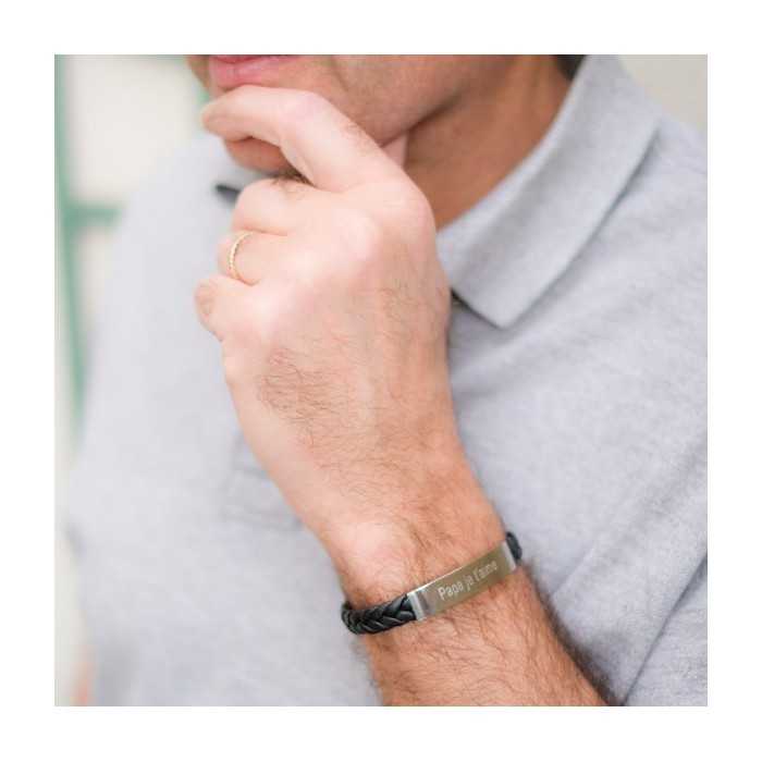 Here's a nice men's leather bracelet black with a beautiful central plate in stainless steel to customize which brings a singular touch to the general appearance of the jewel.