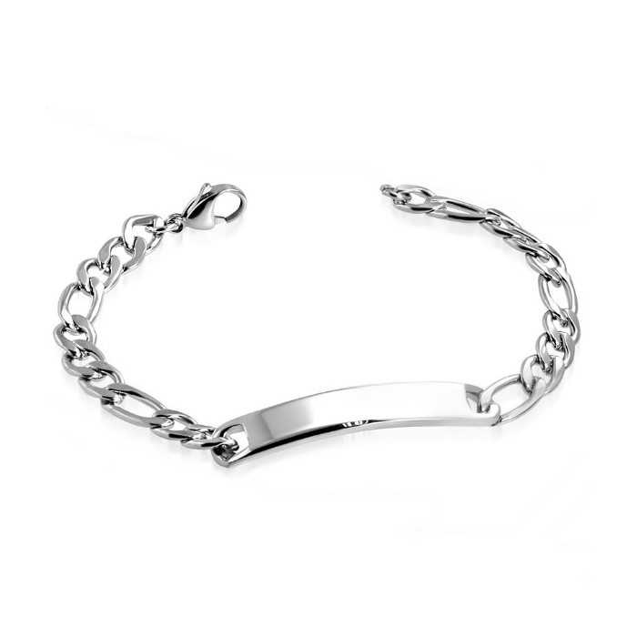 MAN BRACELET IN FIGARO MAIL 7 mm with Customizable Stainless Steel Plate. Secure clasp and elegant design. Perfect as a unique gift.