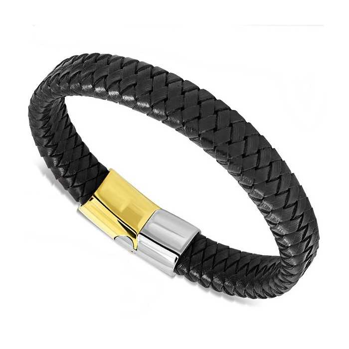 This elegant original high quality bracelet is made of black braided leather. This bracelet is also equipped with a very practical, secure, magnetised and powerful high-quality stainless steel clasp with gold-coloured veneers that perfectly accentuates the style of the bracelet. A seductive bracelet that highlights the sensuality of the refined man's gesture.
