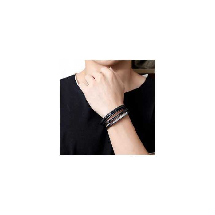Your men's online shop presents this splendid genuine leather bracelet with an unmatched class that will perfectly complement your masculine look. He'll be able to set your wrist perfectly. The combination of black leather and stainless steel makes it very elegant. Set in its center of a stainless steel plate, this bracelet offers the possibility to customize it even more by engraving. A wonderful gift to offer for the feast of fathers, noel or simply for pleasure. A seductive bracelet that highlights the sensuality of the refined man's gesture.