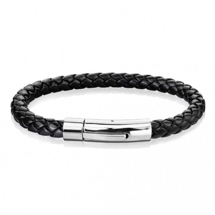 This leather and steel man strap in style resolutely trend is distinguished by its black braided leather, both flexible and robust, sublimated by a secure steel clasp stainless steel. The combination of these two materials creates a refined and harmonious contrast, for a modern and elegant accessory. Give him a custom leather strap man specially manufactured for him.