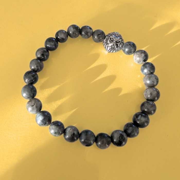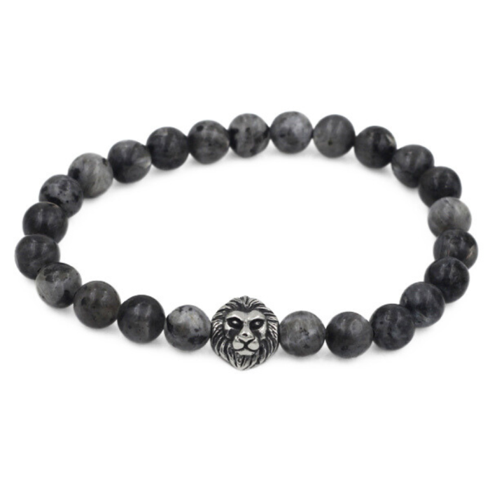 Agate Grey Men's Bracelet and Lion Head in Stainless Steel - 18 to 20 cm