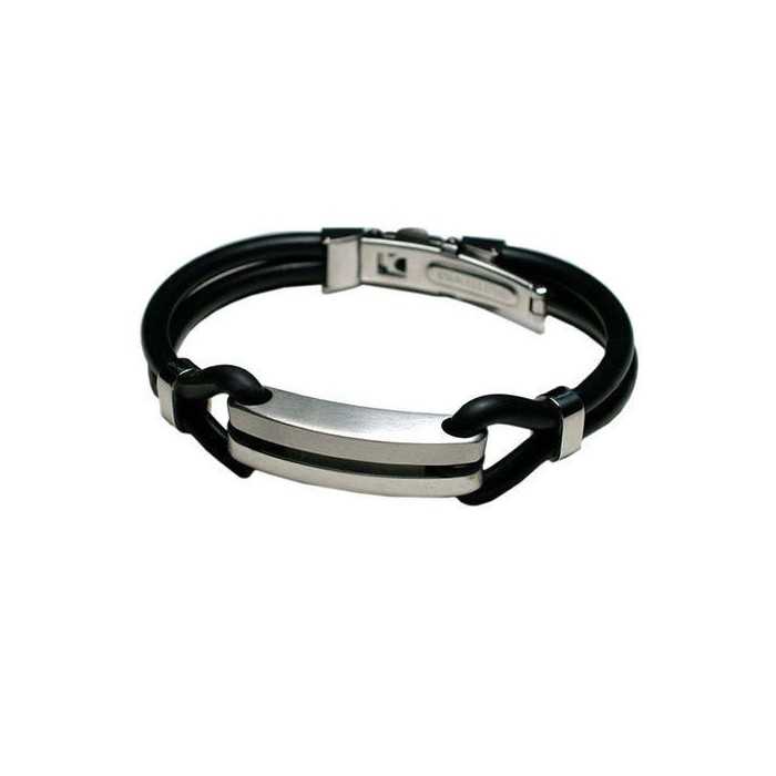 High quality men's bracelet, double bonded in black rubber. The clasp and the two bars are made of stainless steel making this bracelet very original.