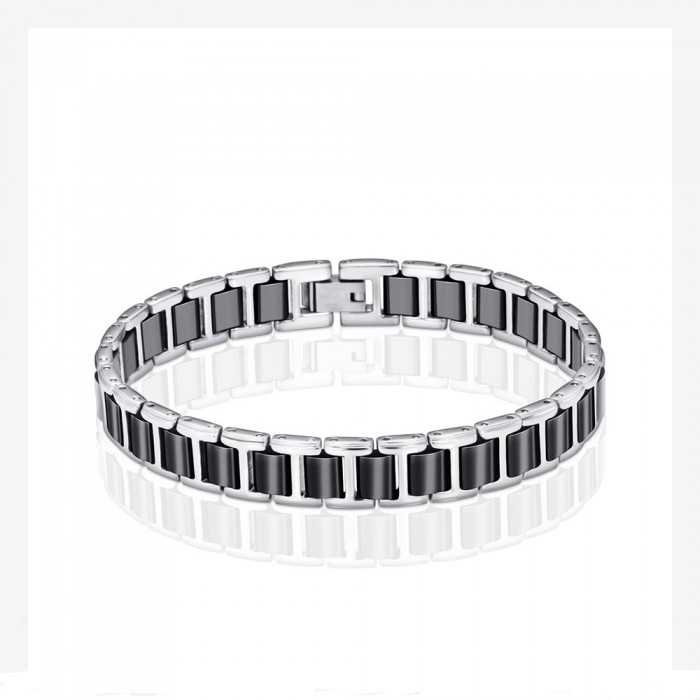 Beautiful original gourmet for man. Designed in solid black ceramic and high quality stainless steel. Ceramic bracelets are lighter by weight compared to tungsten, but are just as scratch-resistant as tungsten carbide.